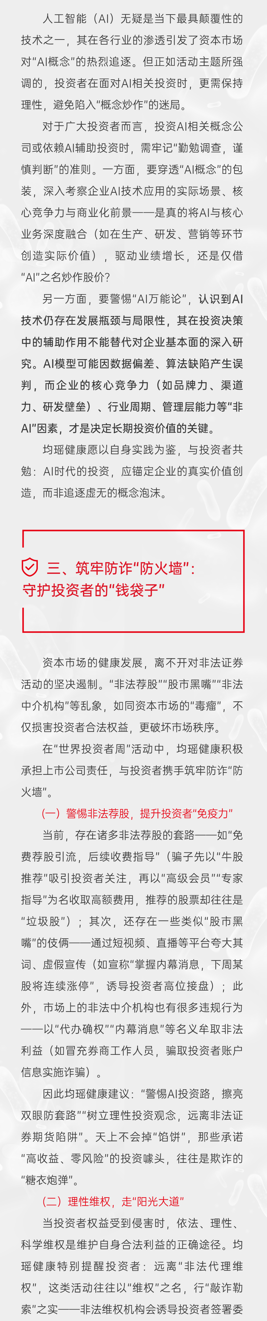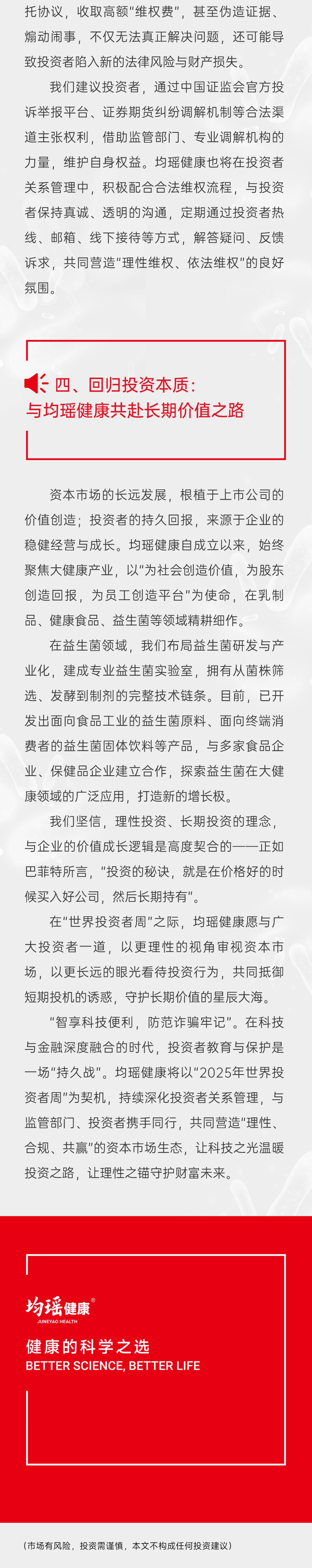 均瑤健康315 投資者教育宣傳:守護您的投資權(quán)益